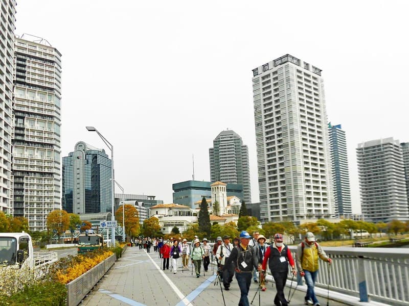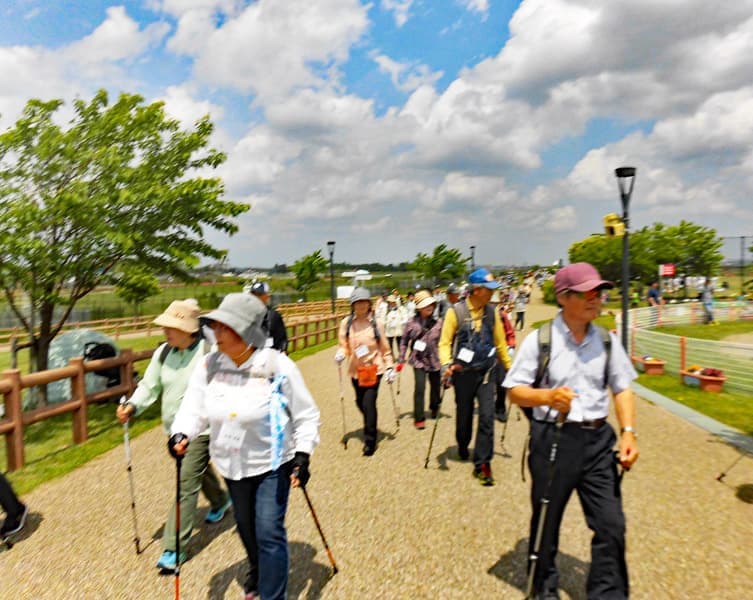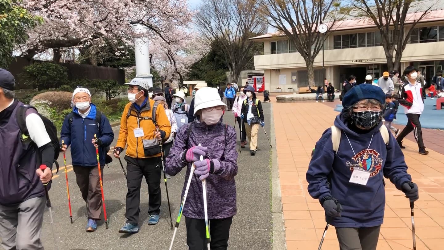 横浜相鉄沿線ノルディックウォーキング会は多くの方が笑顔で楽しんでいます。